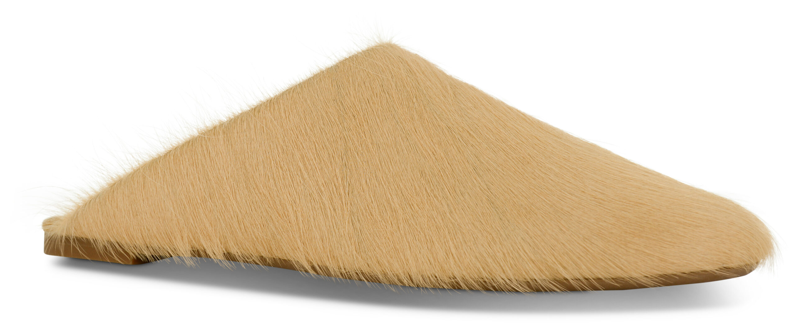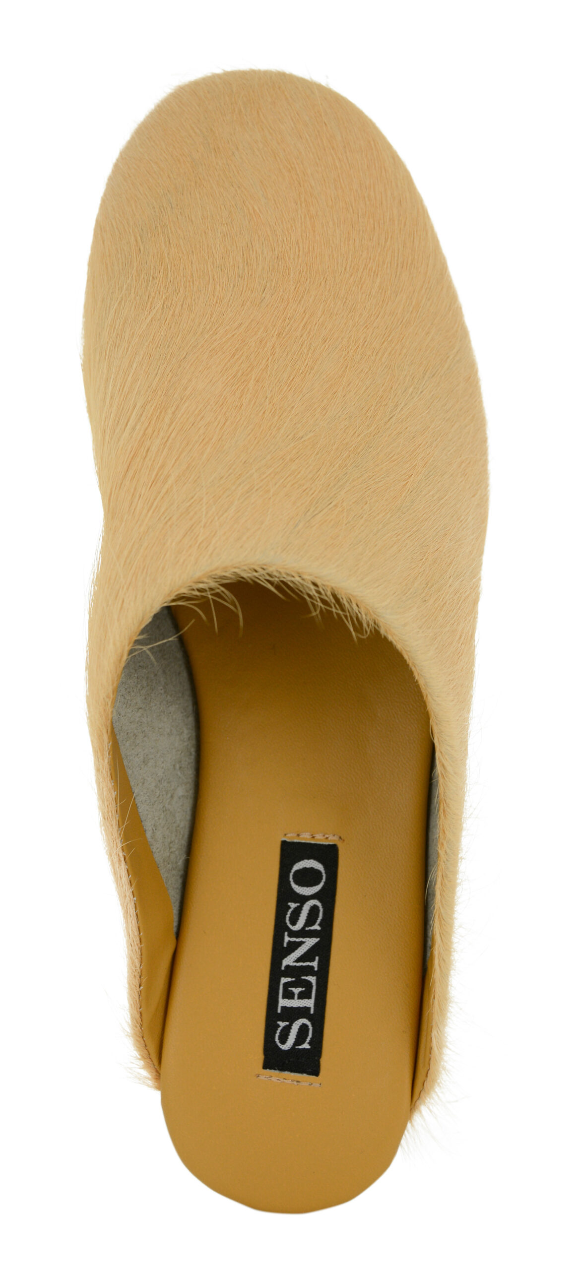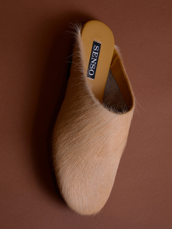 Blonde pony hair mules designed with a sleek slip-on silhouette and a soft, textured finish.
