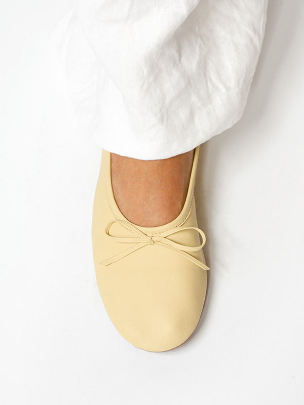 Butter kid leather ballet flat featuring a round toe and bow detail