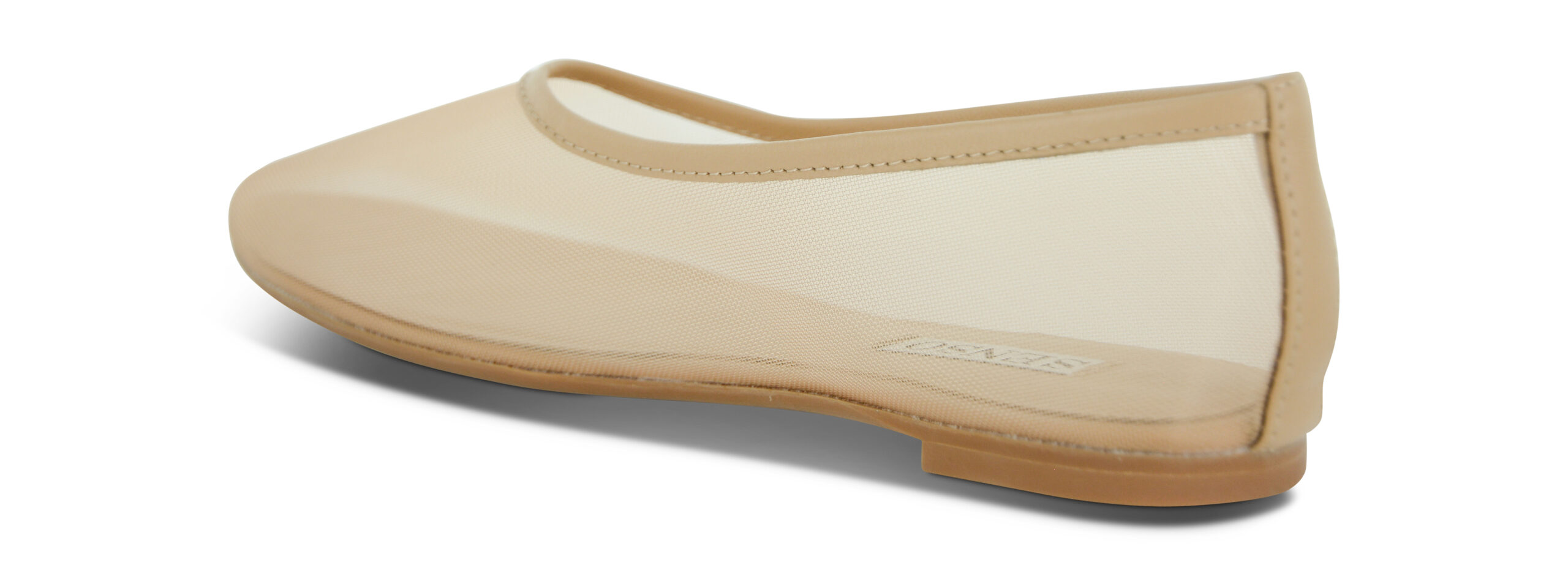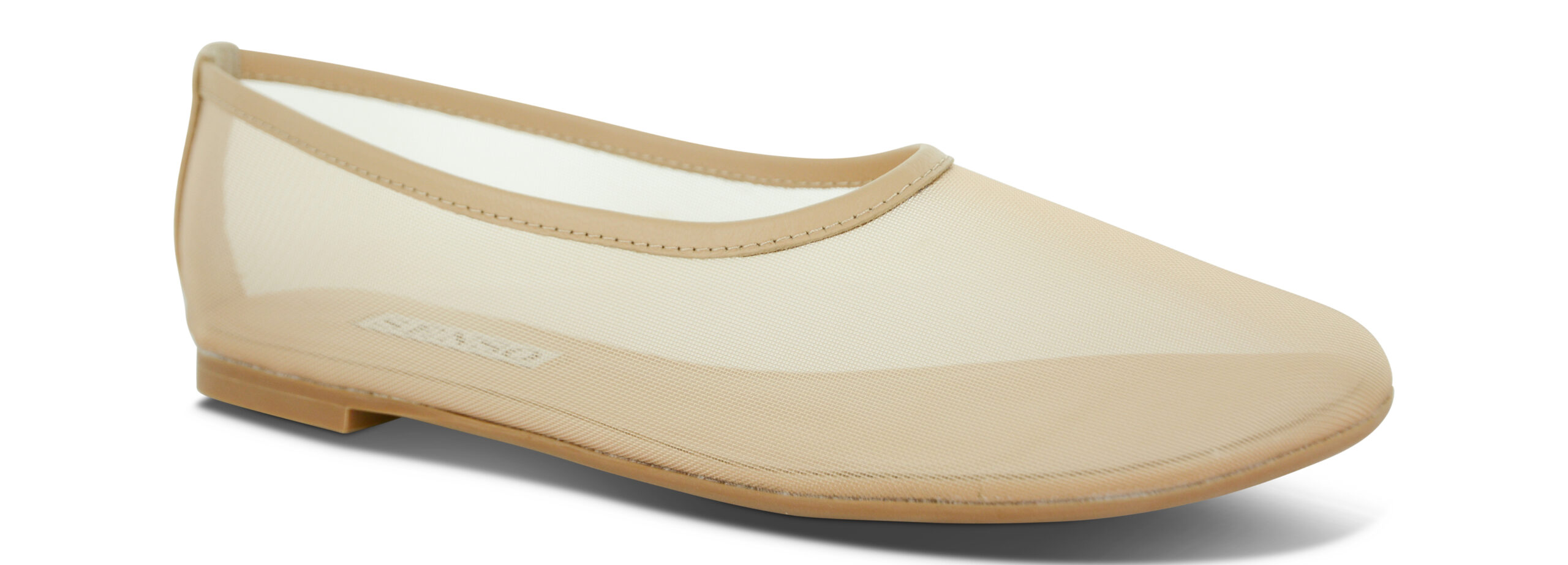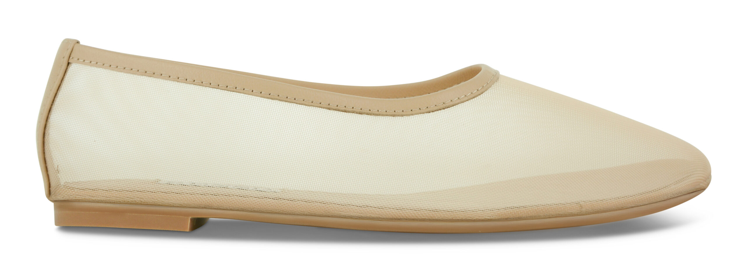 Nude mesh ballet flat featuring a round toe with leather piping
