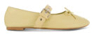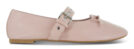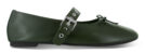 Ebony kid leather ballet flat featuring an adjustable buckle strap, bow detail, and rounded toe