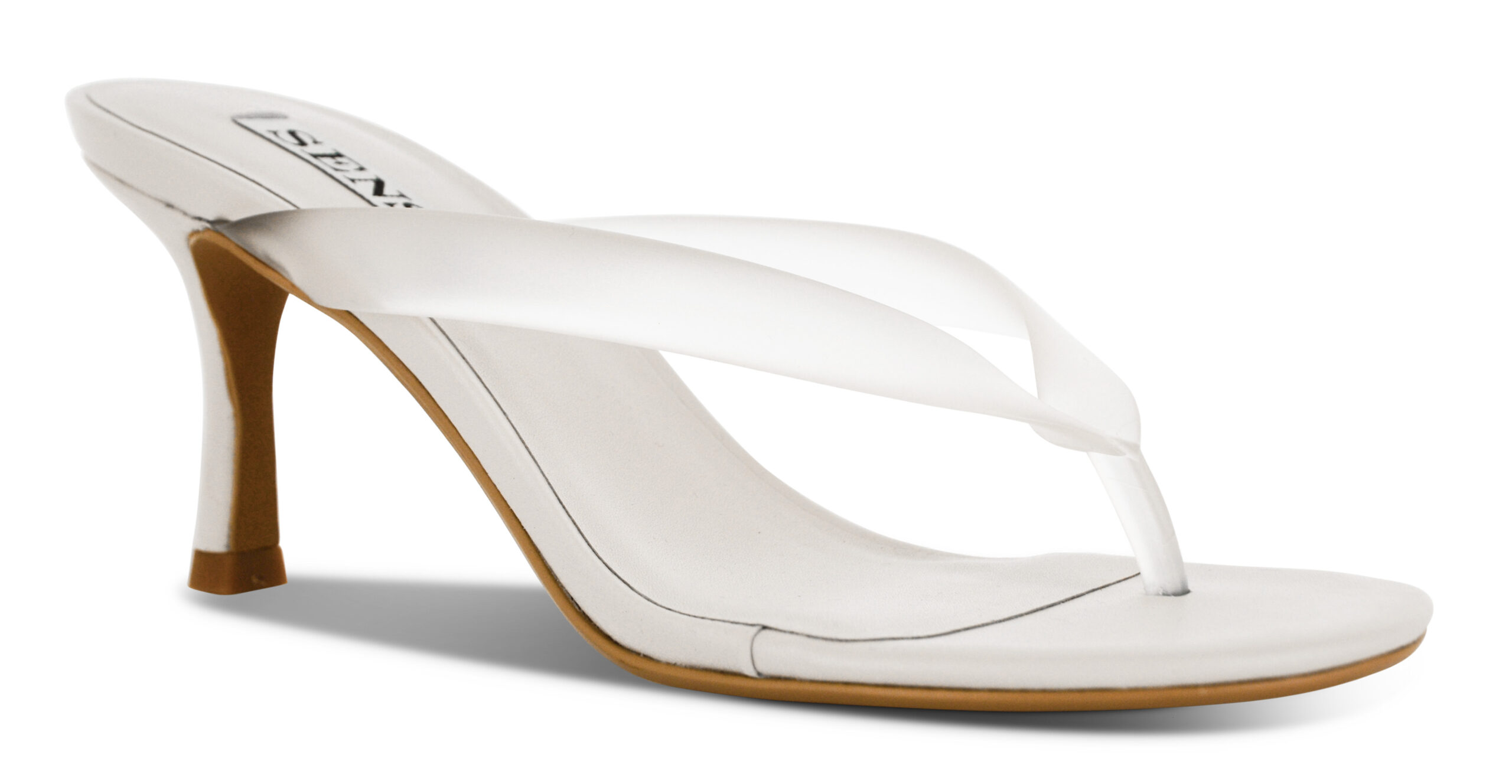 Salt kid leather slip-on heeled sandals featuring a thong silhouette and round toe