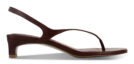 Ebony distressed kid leather heeled sandal with a thong silhouette, adjustable ankle strap, and rounded toe Ebony Distressed Kid Leather Leather Upper Leather Lining Resin Sole Heel Height: 45mm approx.