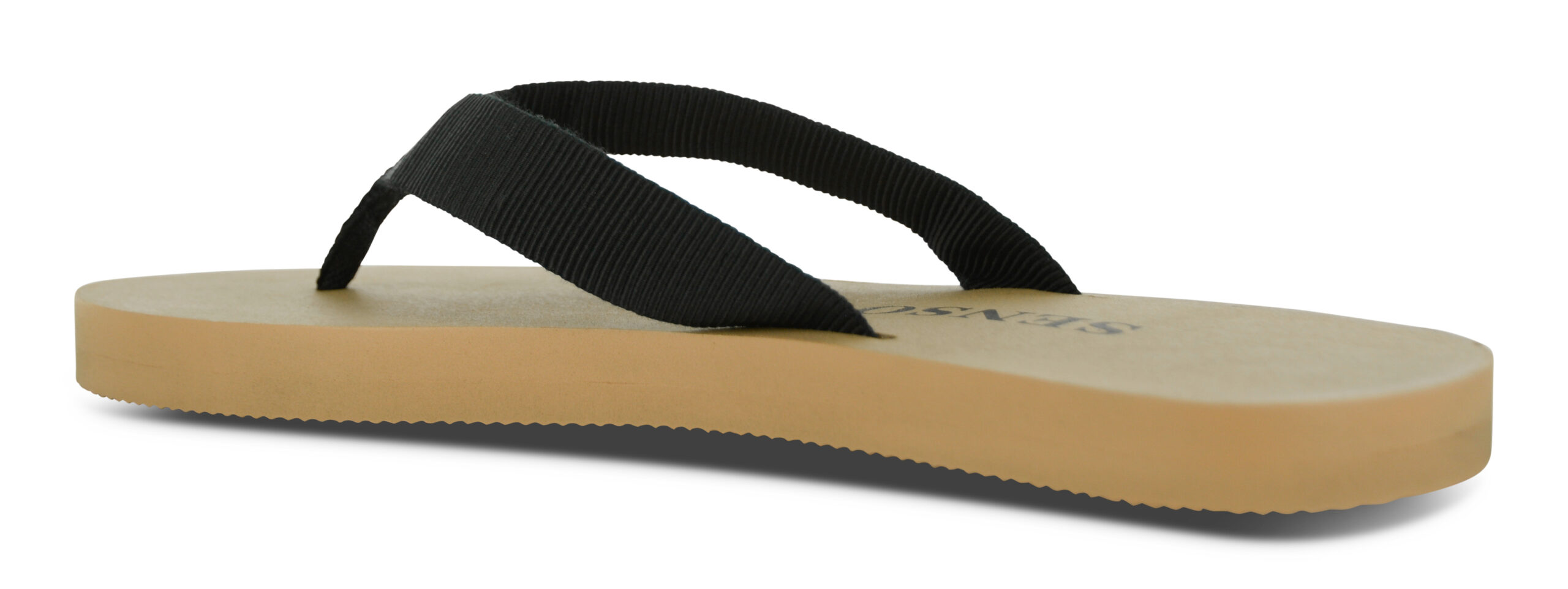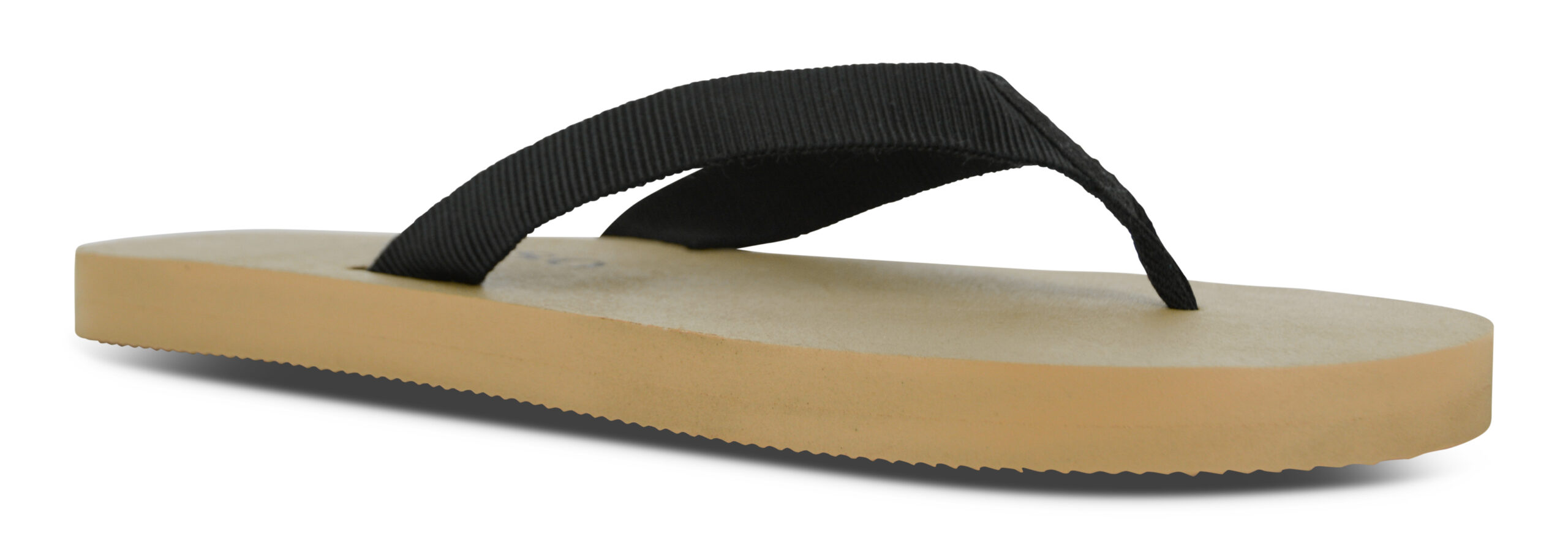 Clay rubber thong sandals featuring a durable rubber sole and finished with a black grosgrain strap