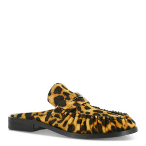 Burgundy Leather sling back flat, featuring a pointed toe, an adjustable strap with silver hardware, and silver dome stud detail.