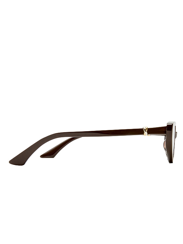 • Finished in a premium dark chocolate frame with gold mono lenses.