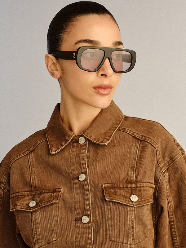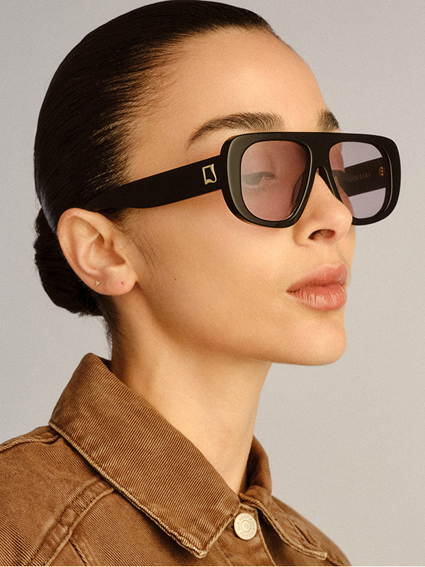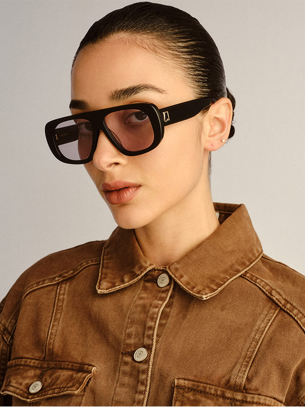An icon of effortless confidence. The Dionne elevates the oversized aviator with clean lines and a refined proportion. Handmade from premium acetate, the design is finished with bespoke organic L-square badge hardware at the temples, offering a signature touch of modern sophistication.