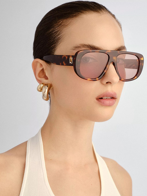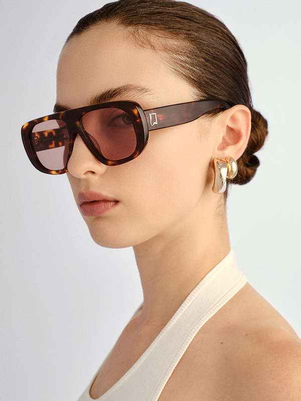 An icon of effortless confidence. The Dionne elevates the oversized aviator with clean lines and a refined proportion. Handmade from premium acetate, the design is finished with bespoke organic L-square badge hardware at the temples, offering a signature touch of modern sophistication.