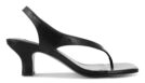 Ice calf leather heeled sandals featuring a thong-style slingback strap with a sculpted square toe