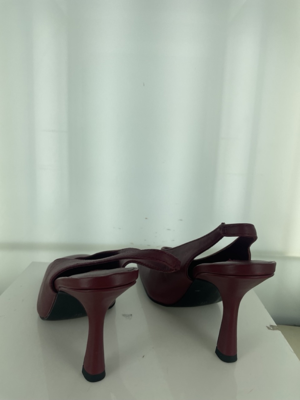 Berry matte leather heeled mules, featuring a square toe, stiletto heel and a slip on style design