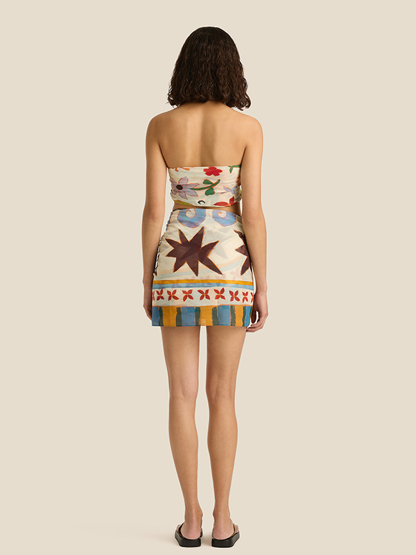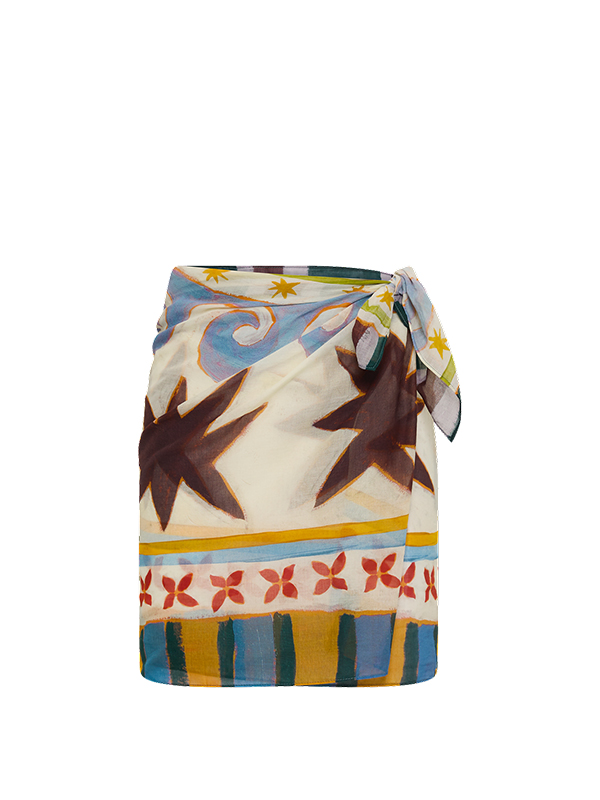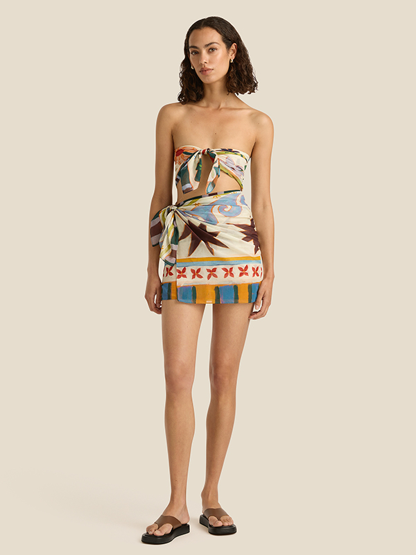 The ‘Petite’ Pareo is a long, narrow iteration of our classic Square Pareo. Cut from the same lightweight organic cotton, its rectangular shape is designed to wrap fully around the body — making it ideal for styling as a mini skirt. Equally versatile, it can be tied at the hip, styled as a strapless top, worn as a headscarf, and layered into looks far beyond the beach.