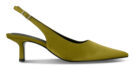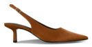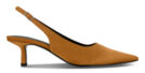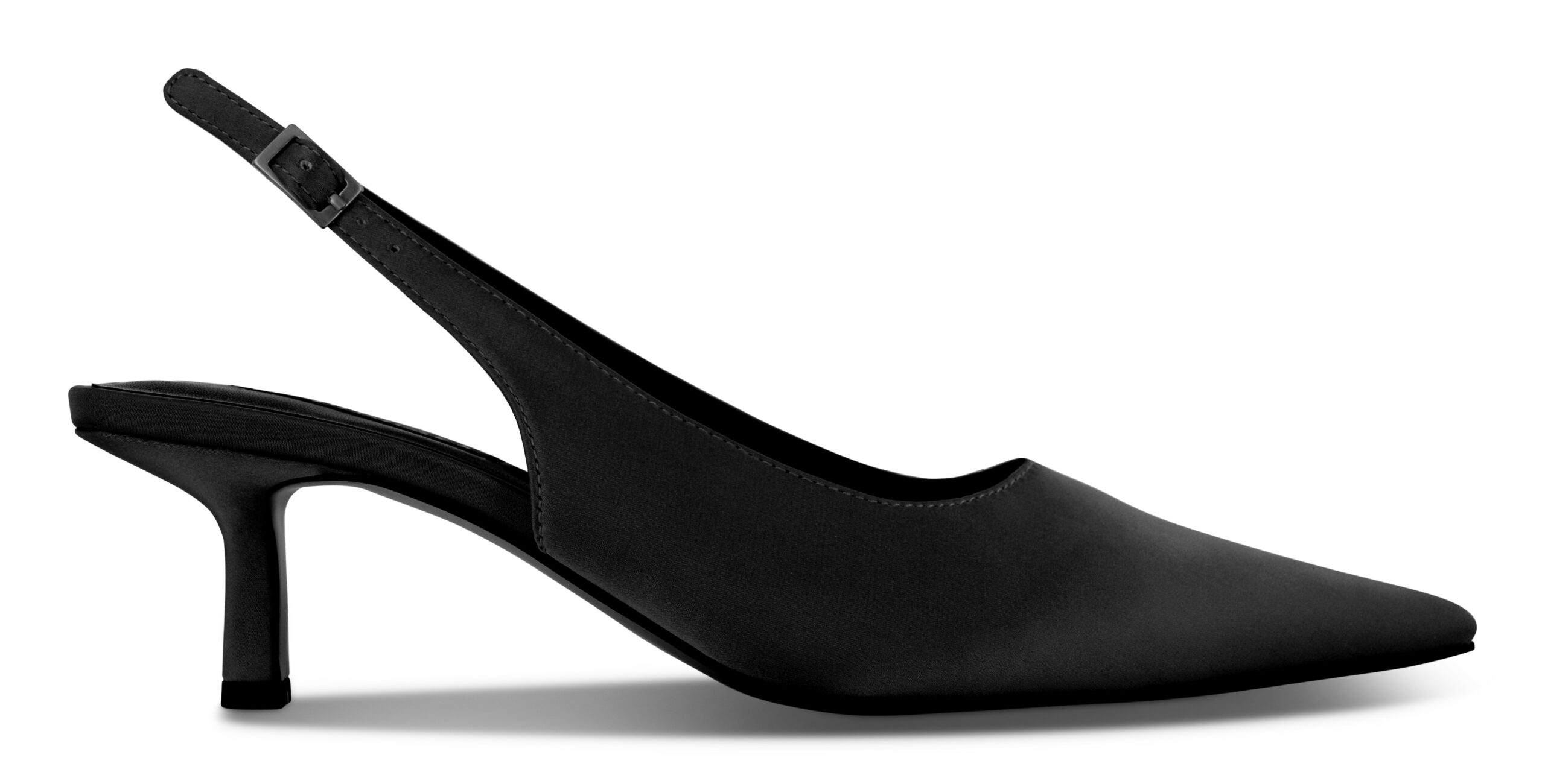 Ebony in slingback heels featuring a pointed toe and a kitten heel