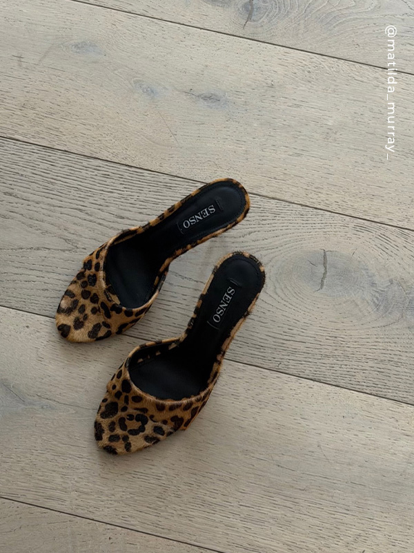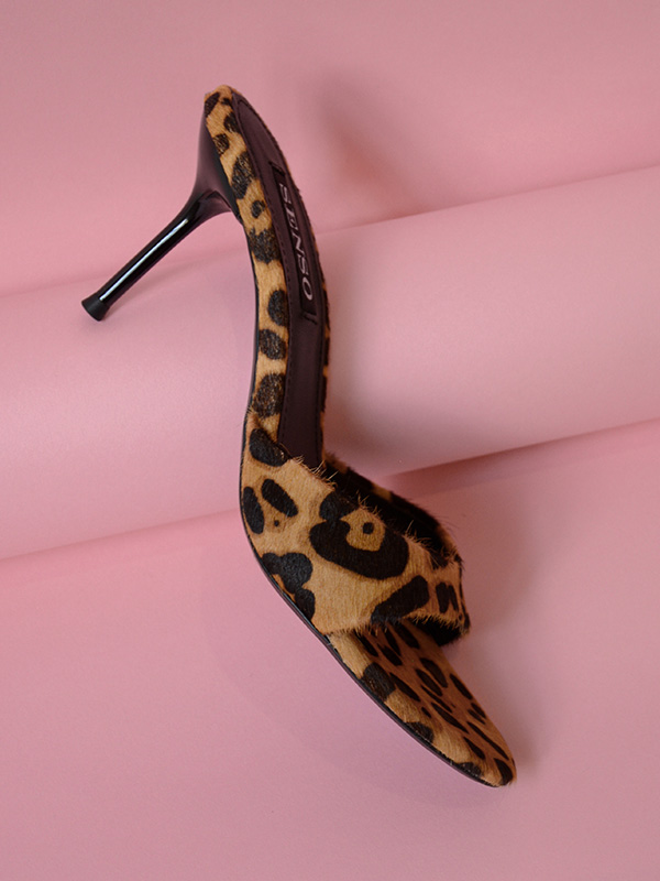 Jaguar printed kid leather heels featuring a slip-on design and a rounded toe