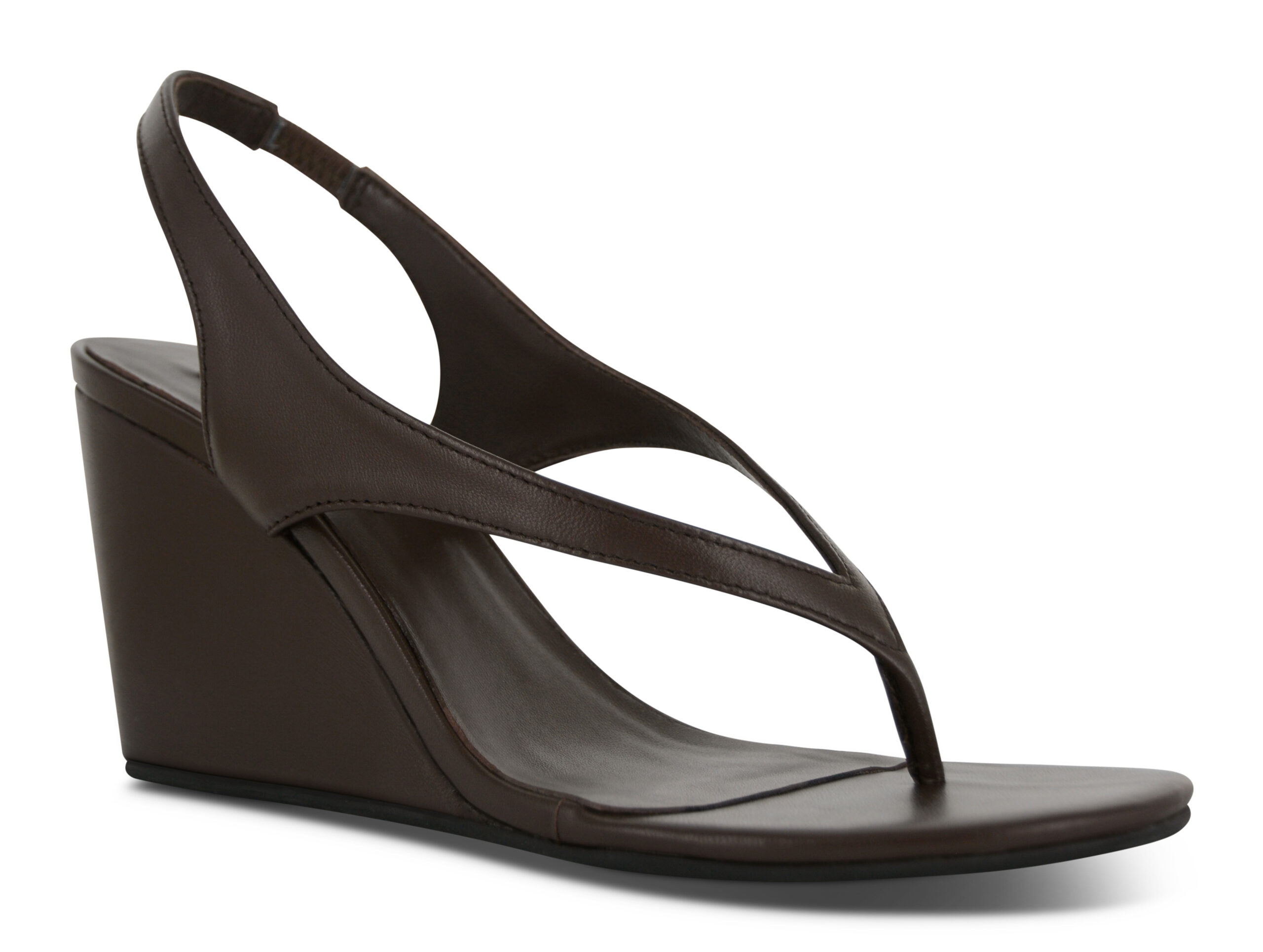 Chocolate kid leather wedge sandals featuring a thong silhouette with a slingback strap and open toe design
