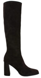 Jacaranda stretch faux suede knee-high boot, featuring a block high heel and side sip fastening.