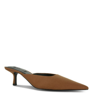 Dark Brown stretch vegan leather ballet flat featuring a round toe, and a high cut elastic throat.